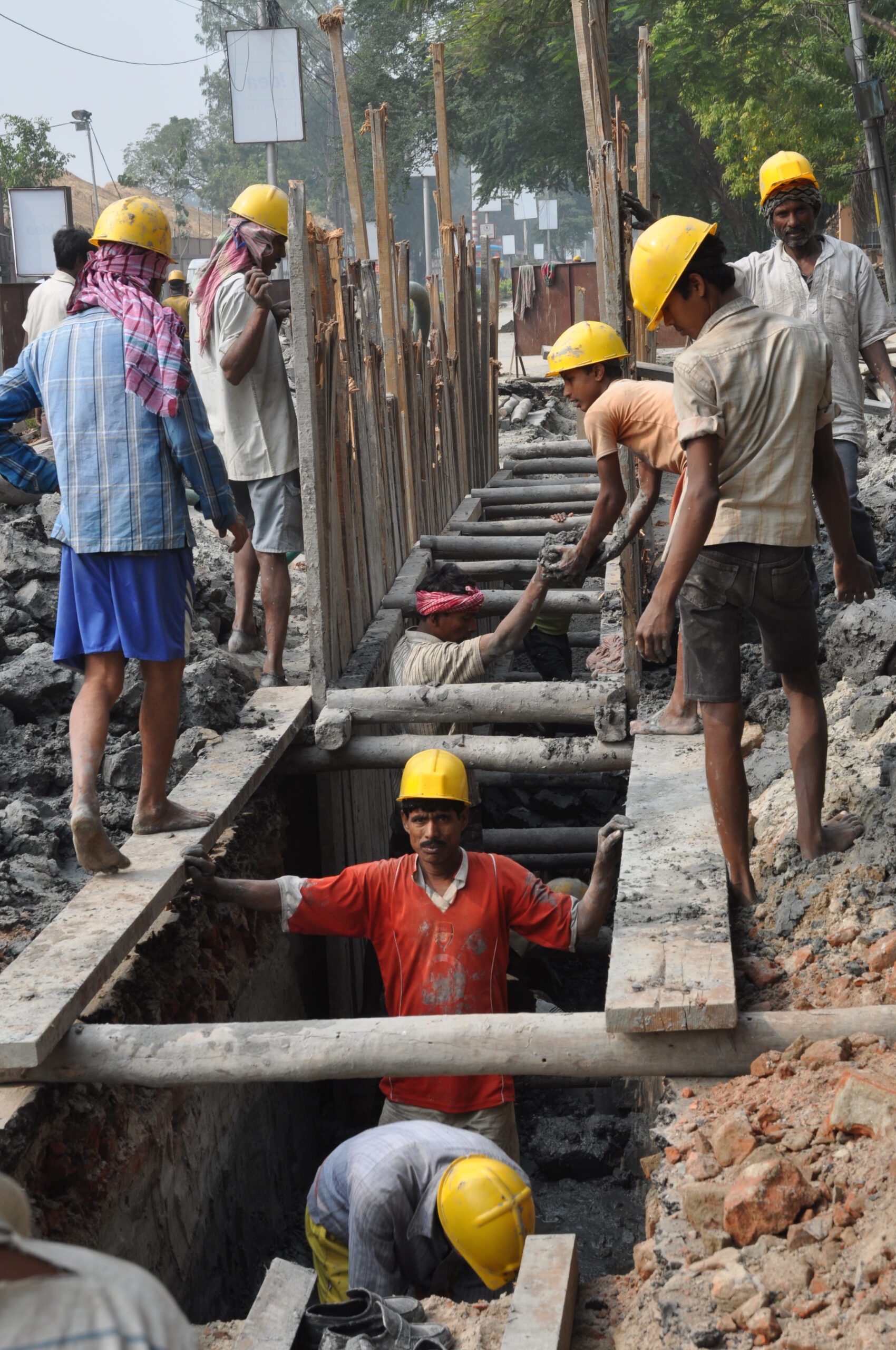 Pipe Laying & Jointing – Proper alignment and secure connections.